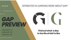 High school students are invited to find out what a "day in the life" of GAP is like. Students have the opportunity to attend GAP classes, meet GAP instructors, and ask questions to learn more about the program. The GAP Preview will take place at the Hangar at DBC from January 13th-15th. Students can attend 1 day, 2 days, or all 3 days. Registration begins on December 1st.